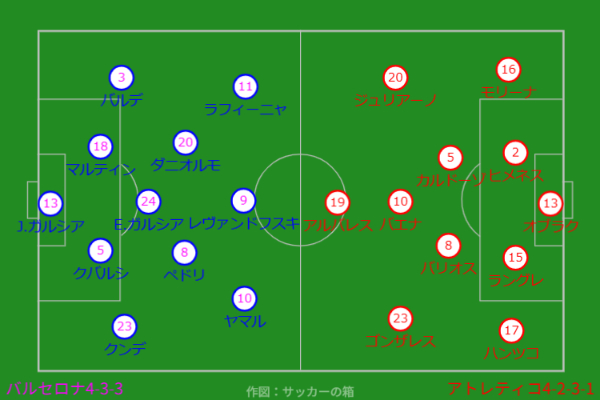 前半はアトレティコが先制するもバルサが同点に追いつく