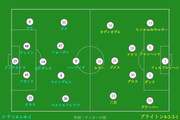 後半終盤にシティは再び攻撃のテンポを上げ、追加点を狙いにいった。FWハーランド、MFベルナルドシルバら攻撃陣が連続してシュートを放つが、ブライトンGKフェルブルッヘンのセービングも光り、点を奪うことが出来ない。